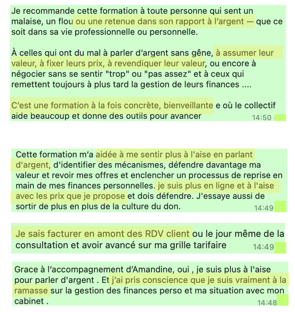 “Je recommande Mindset Abondance pour toutes les personnes qui veulent gagner en confiance en soi et en son projet, parler d’argent sans tabou, et être fière de bien vivre de son activité d’indépendante”