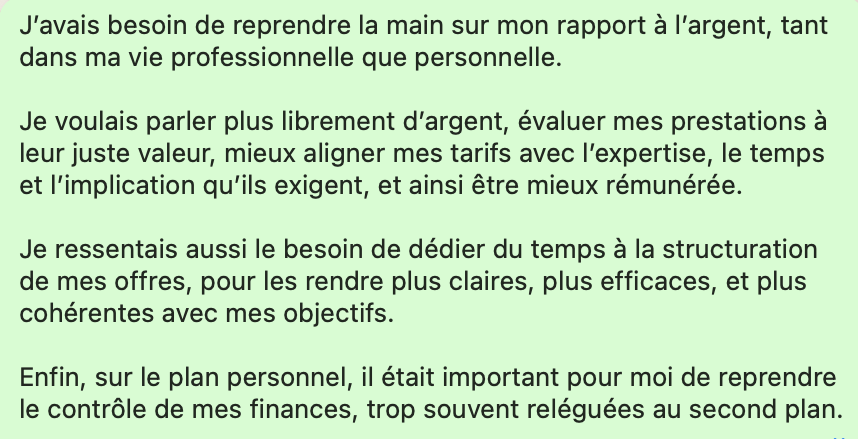 Une méthode pour continuer à progresser , arriver à parler d’argent, négocier, et rester alignée avec tes valeurs.