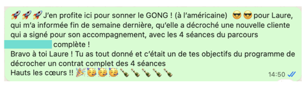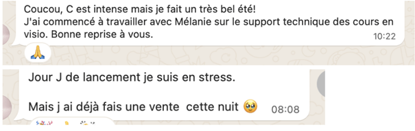 Une communauté Whatsapp ou Discord pour le collectif, sur toute la durée du programme pour : se soutenir, échanger sur ses victoires, avec durée limitée